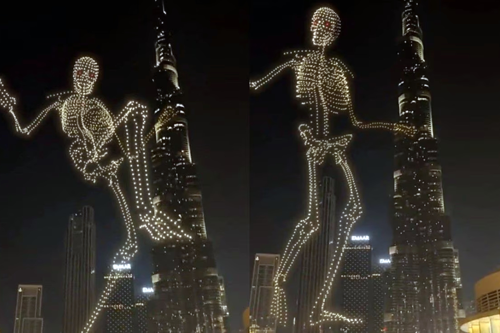 El espectáculo de drones que transformó la noche de Halloween en Dubái con la creación de un esqueleto gigante fue realizado por la empresa Geoscan.