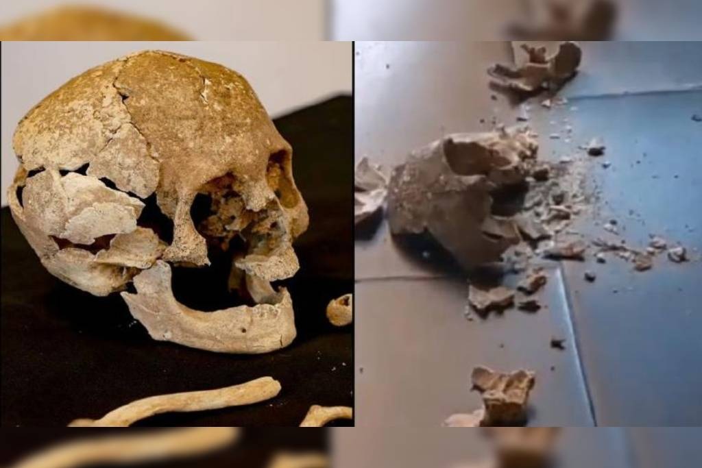 Rompen cráneo de 700 años de antigüedad en Puebla