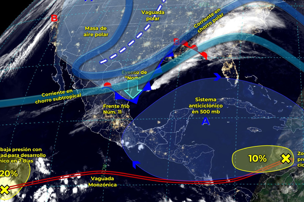 Por lo tanto, informa que se contará con un cielo medio nublado con chubascos en Campeche, así como lluvias aisladas en Yucatán y Quintana Roo.