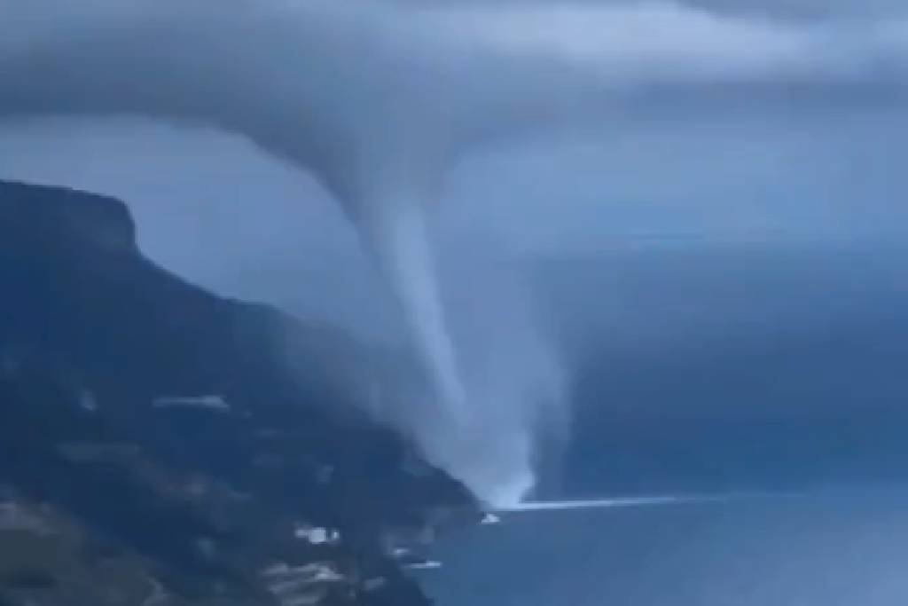 Una impresionante tromba marina sorprendió el martes a los habitantes de la costa de Amalfi en Italia.