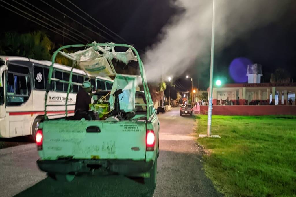 El personal de vectores de la Secretaría de Salud, impulsa las acciones de combate al dengue en todo el estado, con las medidas de control larvario, nebulización, rociado residual, pero lo más importante, es la participación de todos en la eliminación de criaderos de mosquitos, manteniendo el patio limpio con las medidas de lava, tapa, voltea y tira.