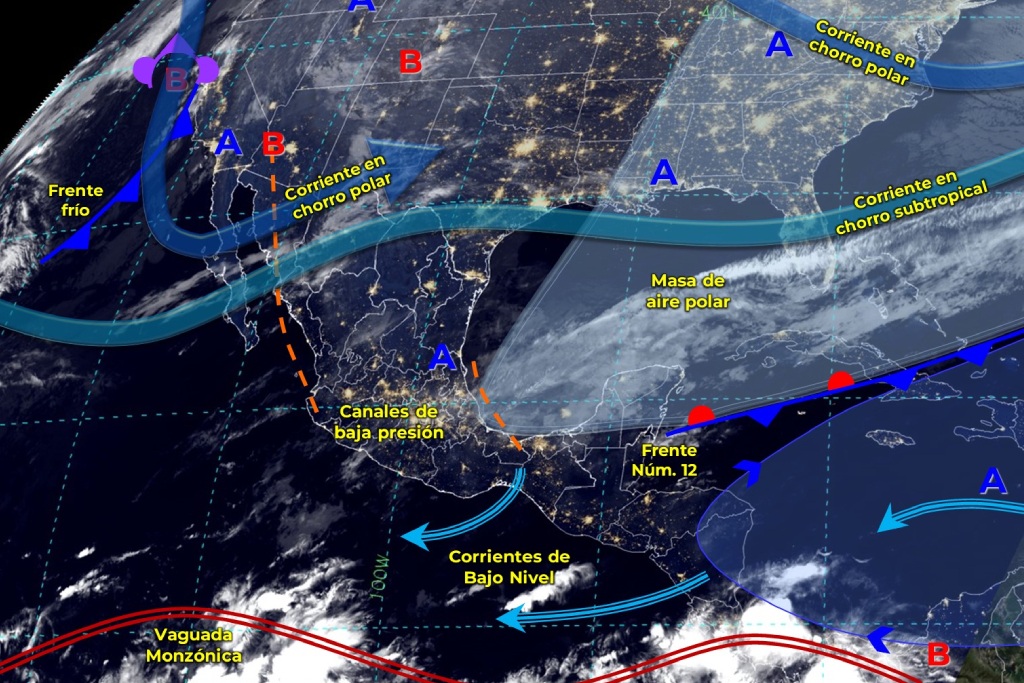 Por lo tanto, informa que se contará con un cielo parcialmente nublado a medio nublado durante el día, con lluvias puntuales fuertes en Campeche y Quintana Roo, las cuales podrían incrementar los niveles de arroyos, así como ocasionar encharcamientos.