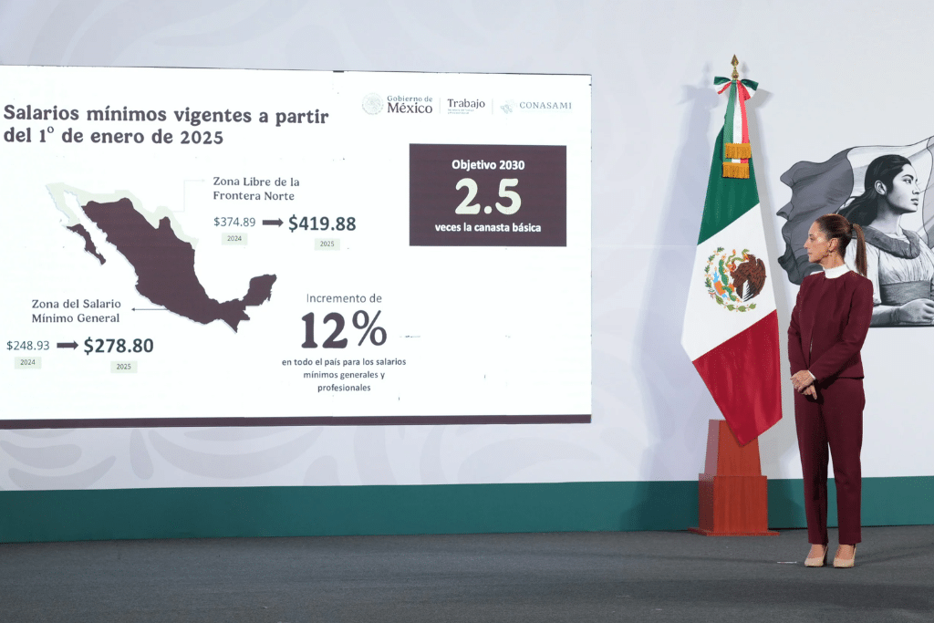 Claudia Sheinbaum anuncia incremento al salario mínimo del 12% para 2025