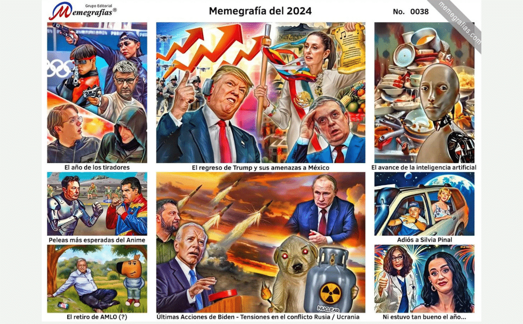 Con el nombre de “memegrafía”, esta imagen se convierte en una herramienta que permite resumir los momentos más importantes del año de manera comprensible y accesible, evocando a las tradicionales monografías que muchos mexicanos usaron en su infancia, pero con un enfoque contemporáneo y visualmente atractivo.