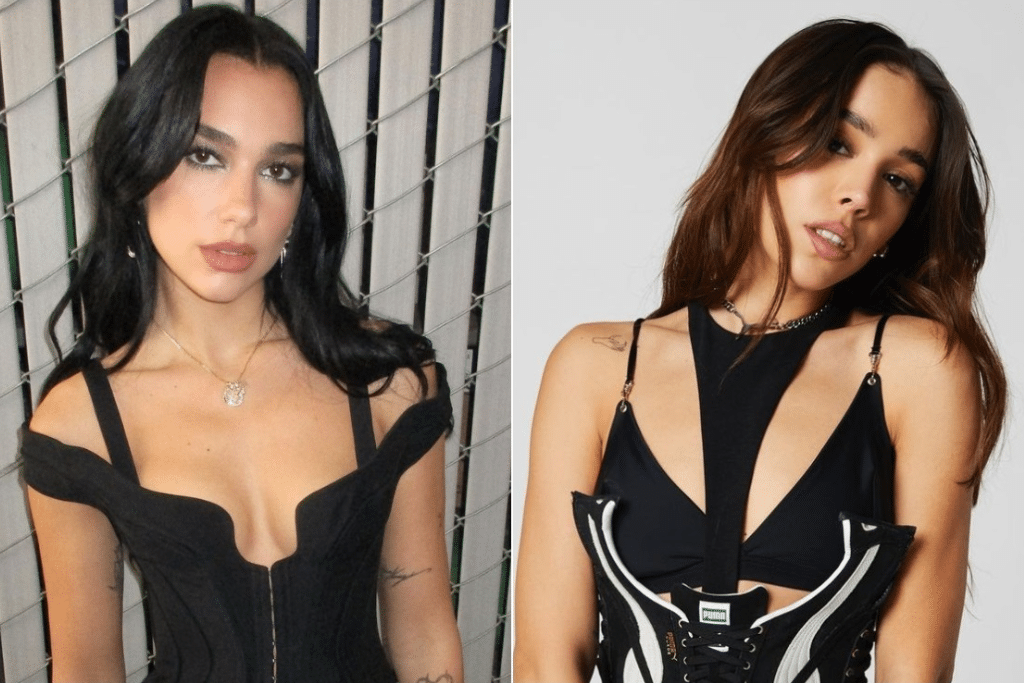 Danna eligió lucirlo de manera más audaz, prescindiendo del bra, y Dua Lipa sumó un bralette, modelo de top triangular y sin varillas que suele usarse con transparencias y blazers.