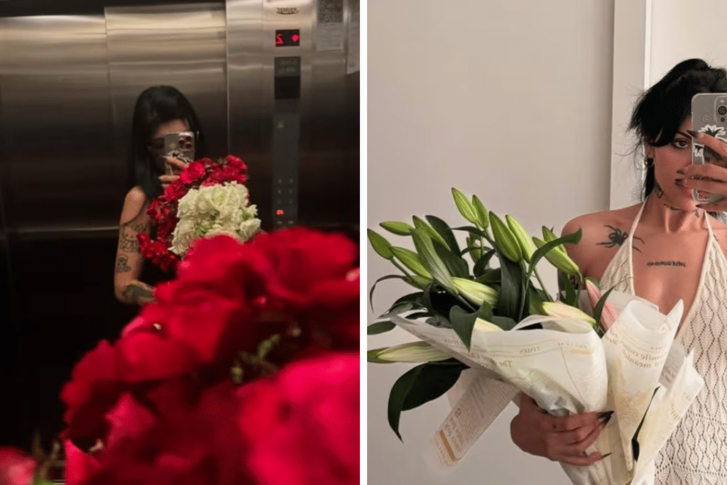 Pero lo que más llamó la atención de sus fans fueron dos imágenes en las que Julieta Emilia Cazzuchelli aparece con ramos de flores. En una, posa frente a un espejo luciendo un vestido de estilo playero que usó en su fiesta de cumpleaños en diciembre, mientras sostiene tulipanes en la mano. En la otra, sube a un ascensor con un ramo de rosas rojas y blancas, lo que llevó a sus seguidores a especular que las flores podrían haber sido un obsequio especial de un nuevo romance.