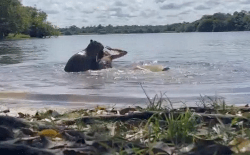 A medida que la joven comienza a nadar para alejarse del animal, el capibara la sigue, nadando tras ella y sin mostrar signos de retroceder. En un momento, el animal comienza a atacar, lo que desata los gritos de desesperación de la mujer.