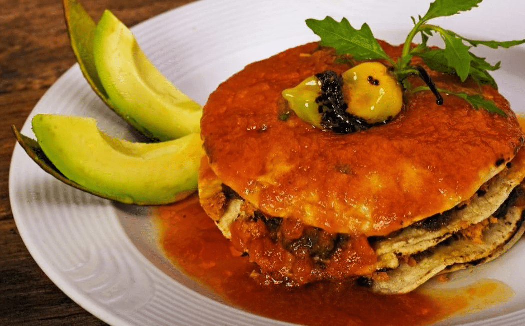 - Arma el pan de cazón: Coloca una tortilla como base, úntala con frijoles, agrega una capa del cazón desmenuzado y un poco de la salsa de tomate y cebolla. Repite este proceso hasta tener 3-4 capas. Termina con una última tortilla, un poco de frijol, y más salsa9.