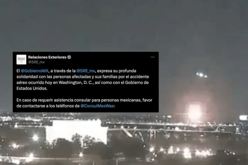 El Gobierno de México expresó este miércoles su solidaridad con el Gobierno de Estados Unidos y con las víctimas y sus familias tras el trágico accidente aéreo ocurrido en la zona de Washington D.C. El incidente, que involucró a un avión regional y un helicóptero militar, tuvo lugar cerca del Aeropuerto Nacional Reagan (DCA), a las 9:00 p.m., hora local, cuando el avión, con 60 pasajeros y cuatro miembros de la tripulación a bordo, colisionó en el aire con un helicóptero Sikorsky H-60.