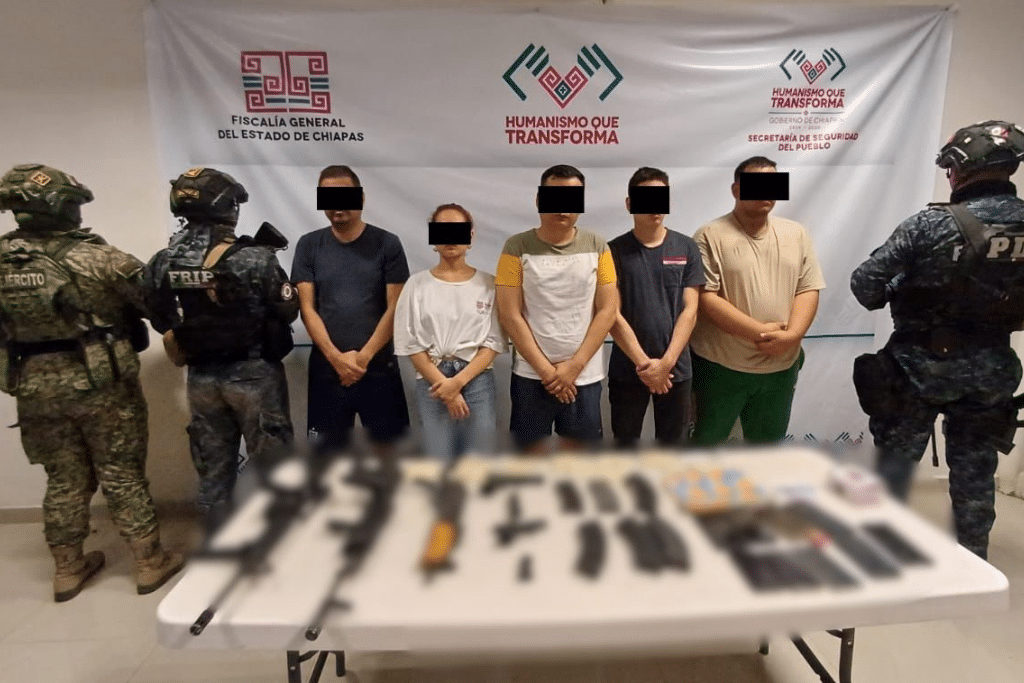 La Secretaría de Seguridad del Pueblo (SSP), a través de la Fuerza de Reacción Inmediata Pakal (FRIP), en coordinación con la Policía De Investigación (PDI) de la Fiscalía General del Estado (FGE), el Ejército Mexicano y la Secretaría de Seguridad y Protección Ciudadana (SSPC) del Gobierno Federal, lograron la detención de cinco personas que presuntamente pertenecen a una célula delictiva que opera en el estado.