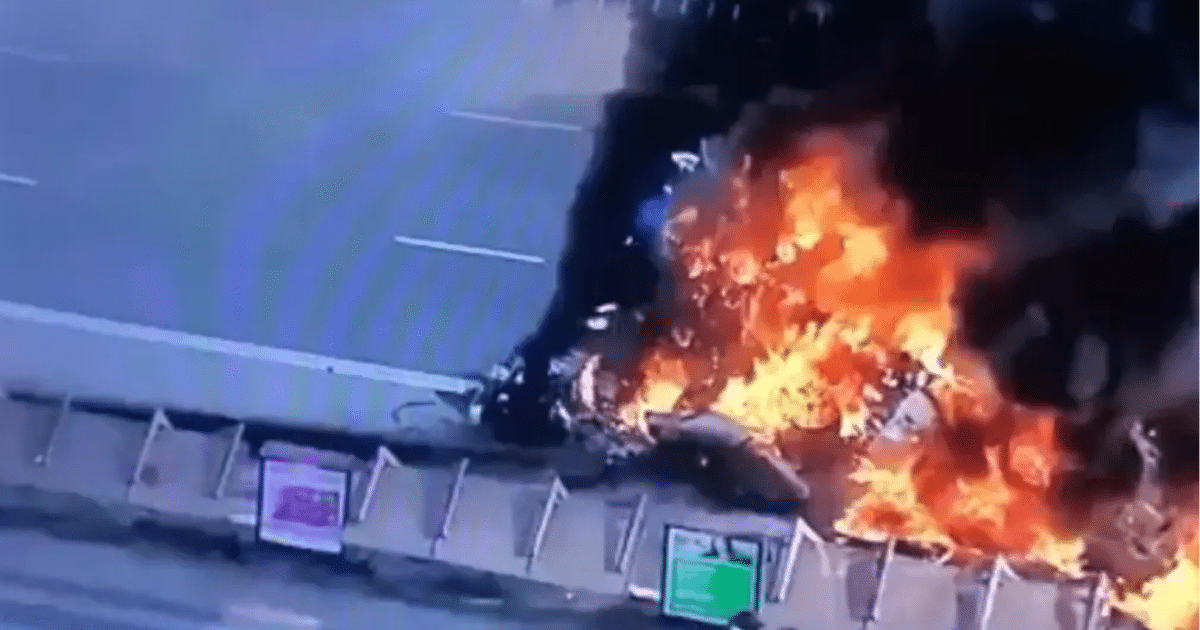 Las imágenes difundidas por los medios locales mostraron el fuselaje del avión y el autobús envueltos en llamas mientras los equipos de rescate trabajaban para sofocar el fuego.