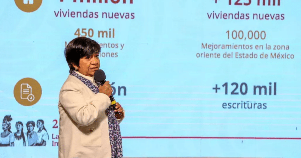Al anunciar el avance del programa Vivienda para el Bienestar, Edna Elena Vega Rangel, secretaría de Desarrollo Agrario, Territorial y Urbano (SEDATU), informó que tienen 322 predios, es decir 2 mil 260 hectáreas, para la construcción de vivienda, lo cual significa el 100% para este 2025.