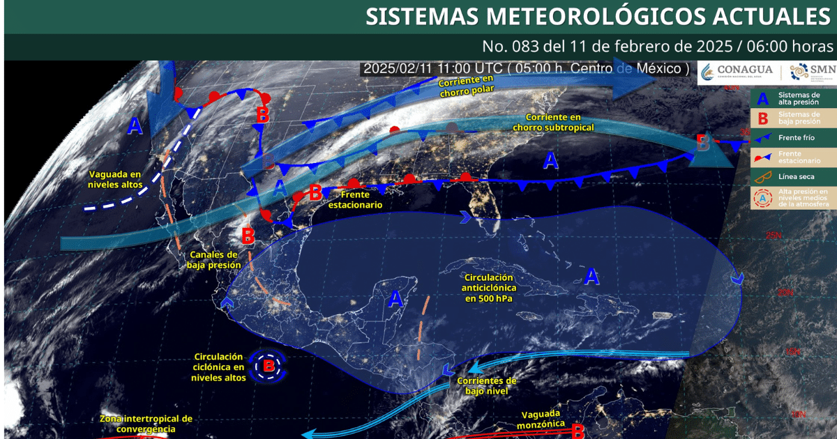 Este 11 de febrero de 2025, el clima en México estará marcado por lluvias intensas, fuertes vientos y un marcado descenso de temperatura en diversas regiones del país.