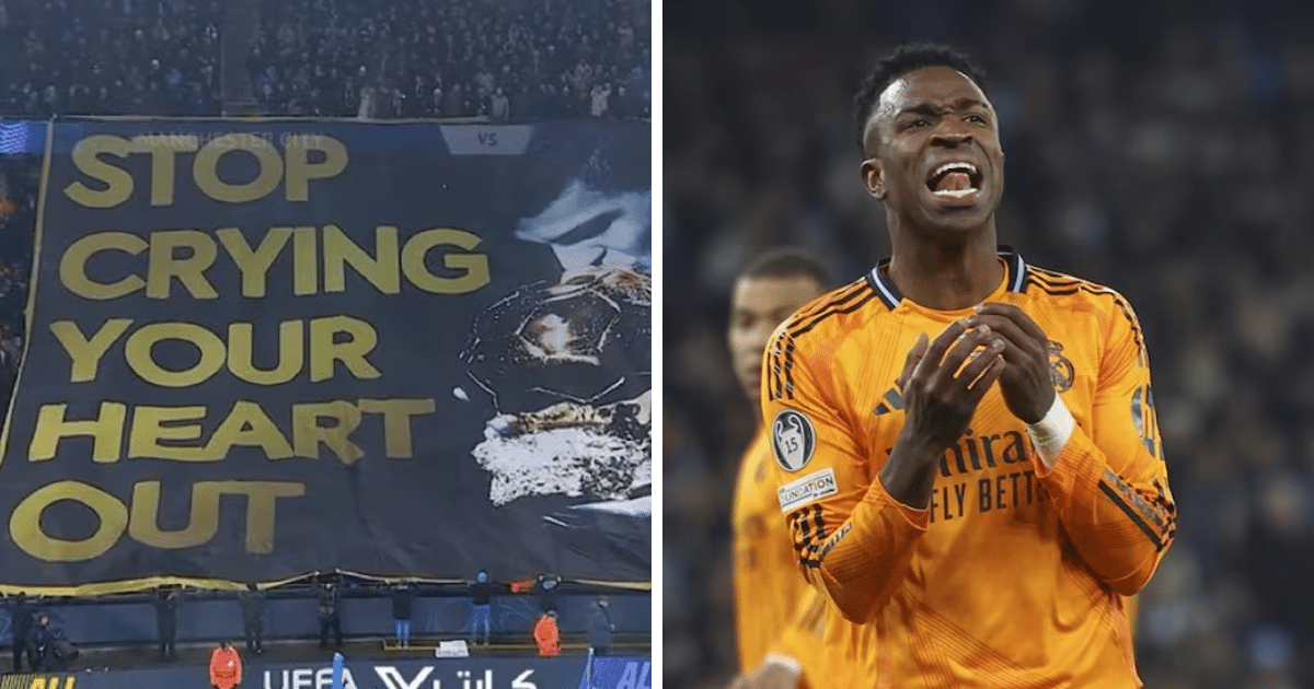 De inmediato en redes sociales se hizo viral el mensaje que desplegaron en las gradas los seguidores del Manchester City que se dio cita en el Etihad Stadium porque dejaban como un “llorón” a Vinicius, luego de asegurar que no le dolía perder el clásico Español, porque estaba seguro que ganaría el Balón de Oro, hecho que no sucedió.