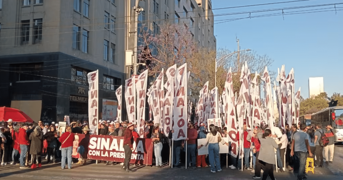 Los simpatizantes de la Mandataria federal llegan caminando a la Plaza de la Constitución por la calle Madero, 5 de Mayo, 20 de noviembre, Pino Suárez y Juárez.