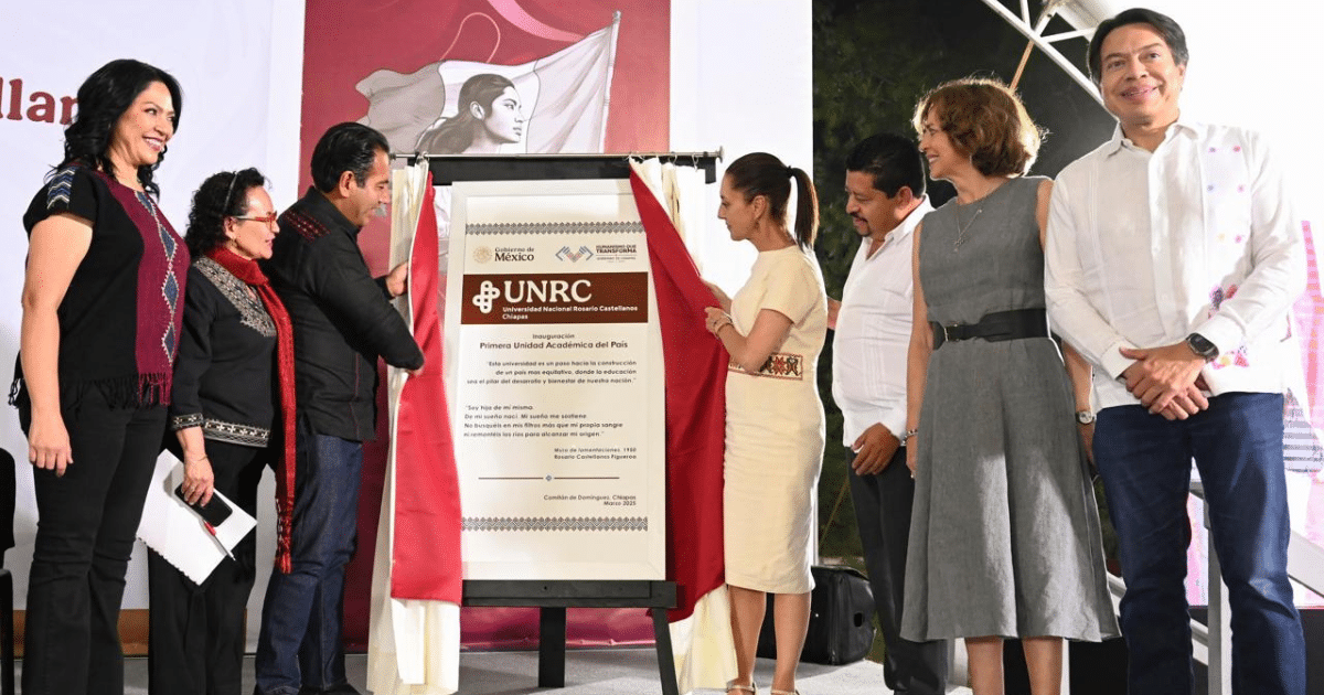 En Chiapas, la Presidenta Claudia Sheinbaum Pardo inauguró la Universidad Nacional Rosario Castellanos (UNRC) Unidad Académica Comitán, el primer plantel de esta institución fuera de la Ciudad de México, con el objetivo de llevar la educación a todos los rincones del país como un derecho de las y los jóvenes.