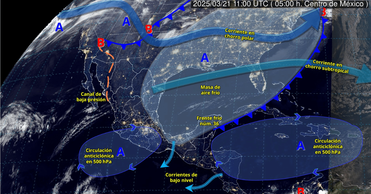 En horas de la tarde-noche, dicho frente se extenderá sobre el occidente del mar Caribe, dejando de afectar al territorio nacional; por su parte, la masa de aire frío asociada, comenzará a modificar sus características térmicas, propiciando un ascenso gradual de las temperaturas en el noreste, oriente, centro y sureste del país.
