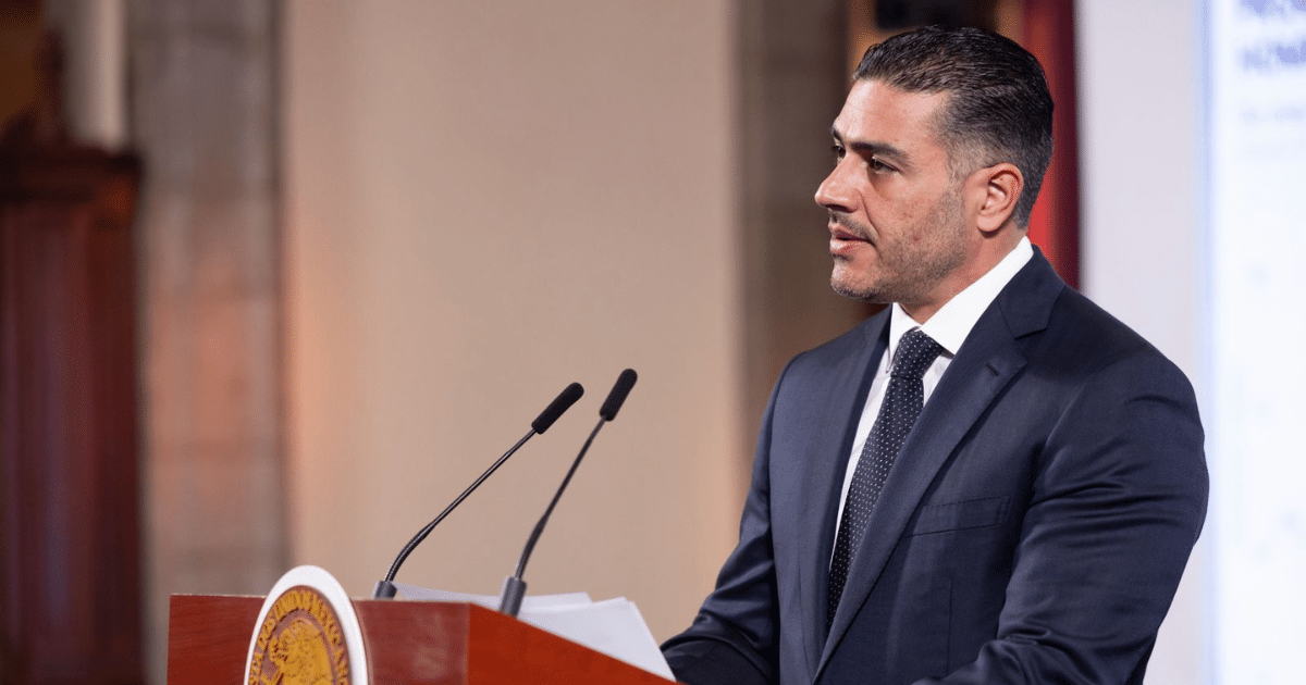 En representación del Gabinete de Seguridad, el secretario de Seguridad y Protección Ciudadana, Omar García Harfuch, presenta los avances de la Estrategia Nacional de Seguridad, de octubre de 2024 al 23 de marzo de 2025, donde se destaca la detención de 15,887 personas por delitos de alto impacto y el aseguramiento de 134.7 toneladas de droga, entre ellas 1,347 kilos y 2 millones 59 mil 892 pastillas de fentanilo; además de 8,222 armas de fuego y 644 laboratorios, lo que contribuye a la pacificación del país.