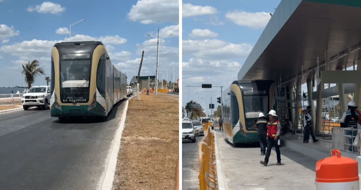 Tren Ligero realiza pruebas en el malecón de Campeche