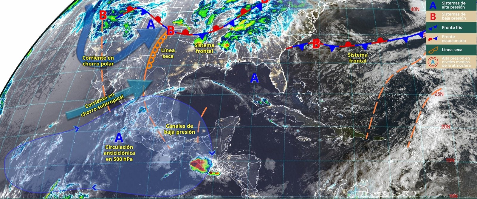 Una línea seca que se extenderá sobre el norte de Chihuahua y Coahuila, en combinación con el ingreso de humedad proveniente del golfo de México y condiciones de inestabilidad en altura, mantendrá la presencia de precipitaciones con descargas eléctricas y vientos intensos en estados como Coahuila, Nuevo León, Tamaulipas y San Luis Potosí.