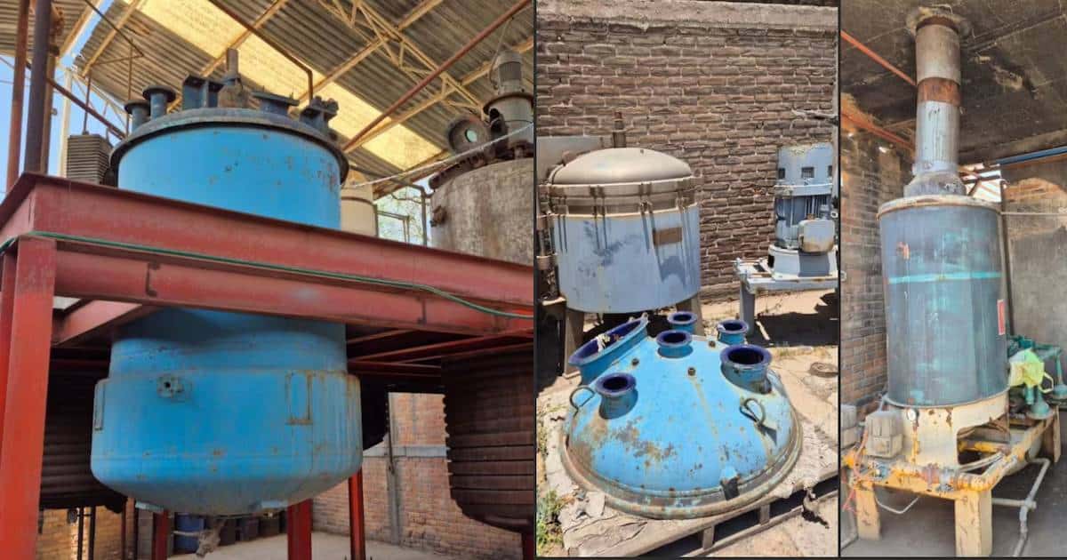 Durante el operativo, las autoridades aseguraron ocho reactores químicos con capacidad de cinco mil litros cada uno y dos reactores adicionales de diez mil litros. También encontraron una torre de destilación de aproximadamente 15 metros de altura y cinco tambos de 200 litros con posible metanfetamina.