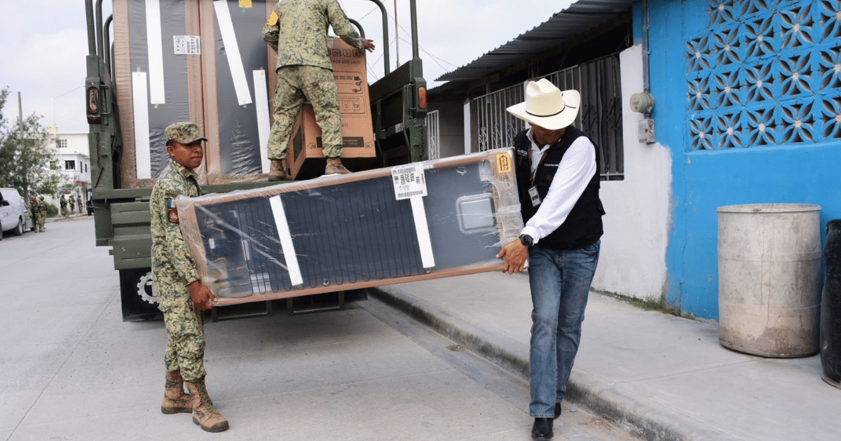 Durante la fase de recuperación como parte del compromiso con el bienestar de la población del 6 de mayo al 15 de junio del 2025 el Ejército Mexicano, Guardia Nacional y la Secretaría del Bienestar distribuirán 12,316 paquetes de enseres, cada uno con un refrigerador, estufa, colchón, ventilador, licuadora y batería de cocina.