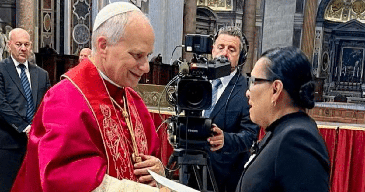 Rosa Icela entrega carta de invitación a México a papa León XIV