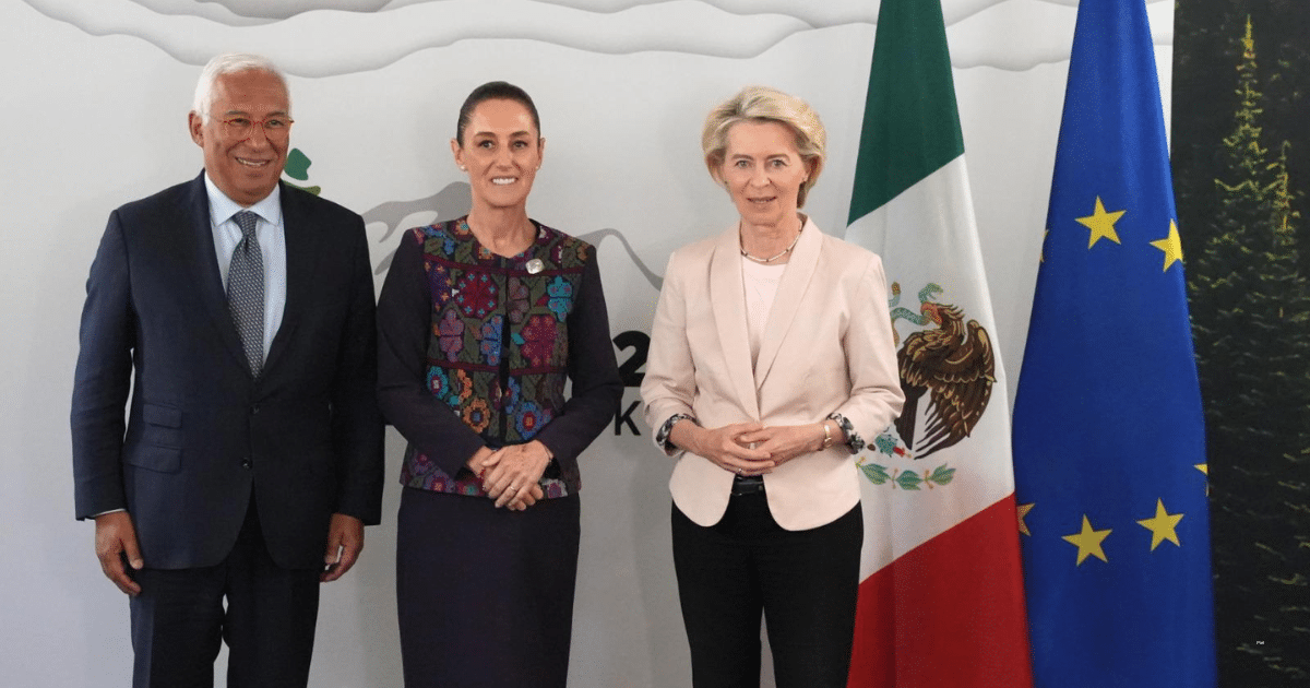 “En el G7, nos reunimos con el presidente del Consejo Europeo, António Costa @eucopresident, y la presidenta de la Comisión Europea, @vonderleyen, para dialogar sobre la actualización de nuestro tratado comercial. La invité a visitar México”, compartió a través de sus redes sociales.