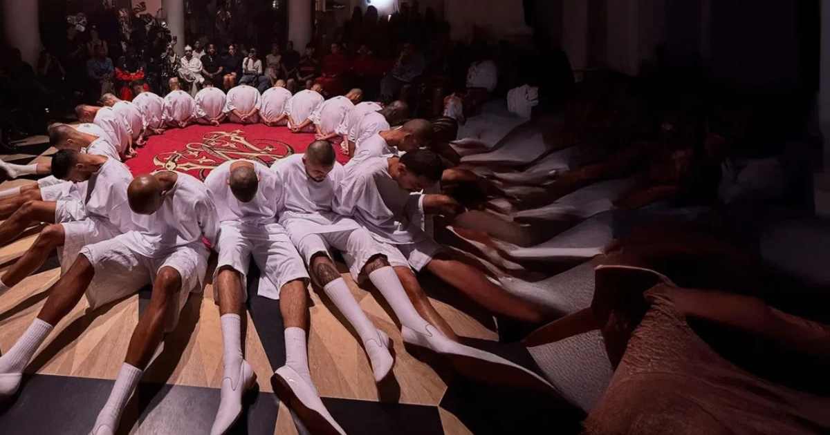 En el evento, varios modelos aparecieron hincados, con camisetas blancas y manos hacia atrás, evocando la imagen de los reos recluidos en dicha cárcel, lo que generó la reacción inmediata del mandatario.