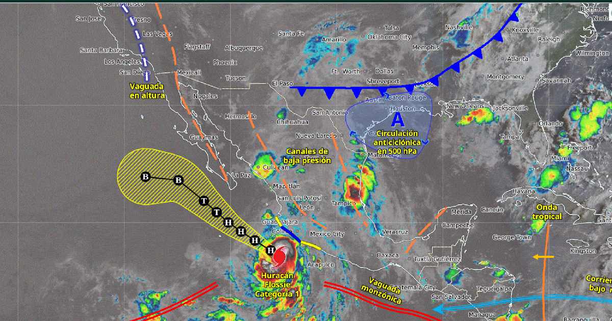 La extensa circulación del huracán Flossie ocasionará lluvias intensas a torrenciales en Sinaloa, Nayarit, Jalisco, Colima, Michoacán y Guerrero.