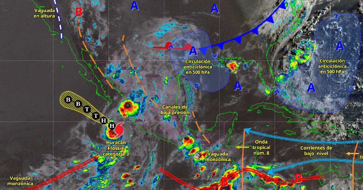 Clima nacional: huracán Flossie ocasionará lluvias fuertes en Nayarit y Sinaloa