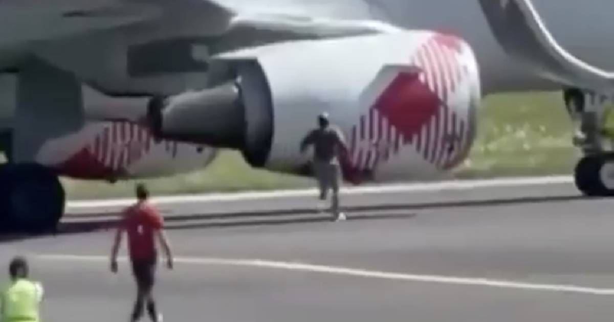 En el video se ve al hombre intentando escalar el costado de uno de los motores, posteriormente este corre a la turbina izquierda para ser succionado dentro de ella. Las imágenes difundidas en redes sociales han generado conmoción entre los usuarios.