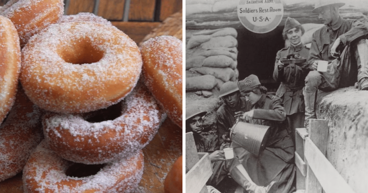 Durante la Primera Guerra Mundial, el Ejército de Salvación envió voluntarias a Francia para apoyar a los soldados. Ante la escasez de ingredientes, Margaret Sheldon y Helen Purviance crearon donas con latas de café como molde. Su éxito fue tal que llegaron a preparar miles por día, convirtiéndose en íconos de apoyo moral para las tropas.