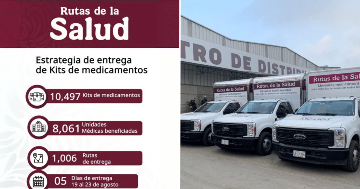 En tan solo cinco días, el programa Rutas de la Salud logró surtir más de 8 mil centros de salud en 23 estados del país con kits de medicamentos completos; esta semana inicia la distribución en hospitales.