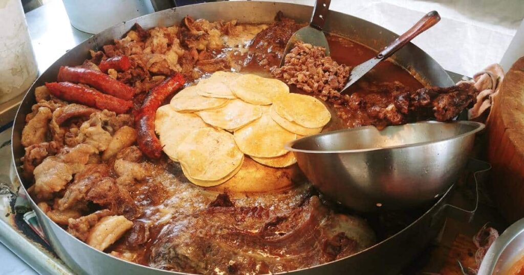 El suadero, un corte de carne proveniente de la res, se cocina comúnmente en una plancha con aceite o manteca, donde burbujea junto a otros ingredientes como tripa, longaniza o campechano. El resultado: una textura jugosa y un sabor profundo que se sirve en tortillas de maíz recién calentadas.