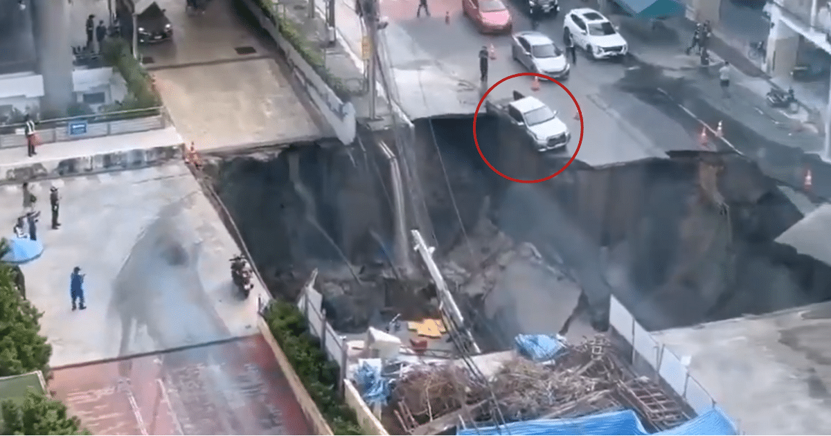 Enorme socavón en Bangkok “traga” parte de una calle frente al hospital Vajira