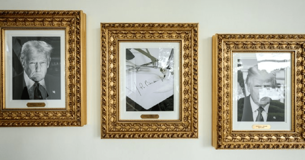 Asimismo, ha reubicado el retrato de Barack Obama y colgado varias imágenes suyas, incluso una portada de periódico con la foto policial tomada en Atlanta en 2023, enmarcada a la entrada del Despacho Oval.