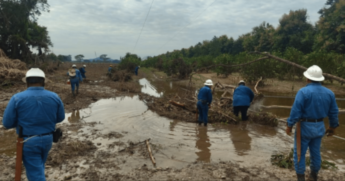 CFE trabaja ininterrumpidamente en el restablecimiento eléctrico por fuertes lluvias en la región oriente del país; el avance es del 91%
