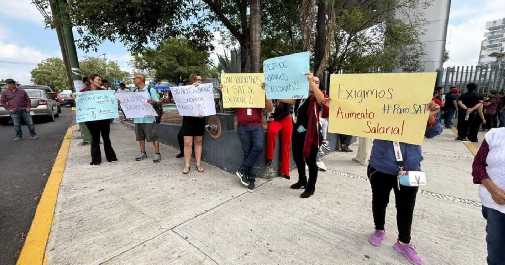 Este martes, trabajadores del Servicio de Administración Tributaria (SAT) iniciaron un paro nacional bajo la modalidad de “brazos caídos”, como parte de una jornada de protesta para exigir un salario digno, mejores condiciones laborales y el fin de las desigualdades entre personal sindicalizado y de confianza.