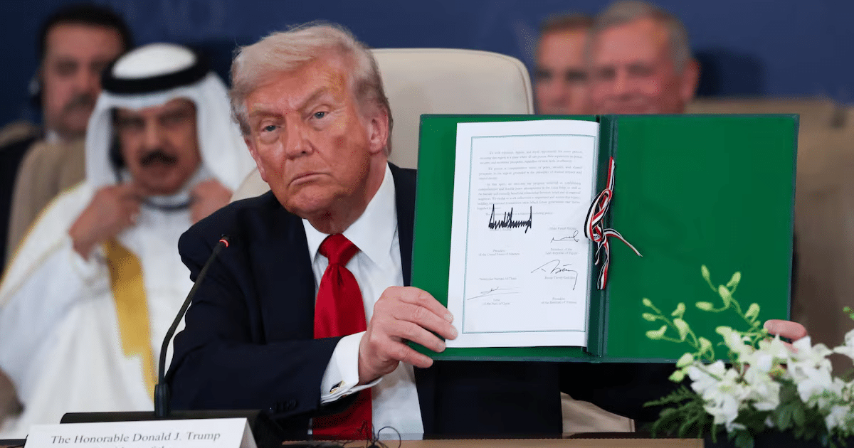 El expresidente de Estados Unidos, Donald Trump, firmó ayer el plan de paz para Medio Oriente en una ceremonia celebrada en la ciudad turística de Sharm el Sheij, Egipto, junto a los mandatarios de Egipto, Turquía y Qatar, países mediadores en el acuerdo entre Israel y Hamas. En el acto, Trump afirmó que “la tercera guerra mundial no comenzará en Medio Oriente”, al presentar el documento como garante del pacto.
