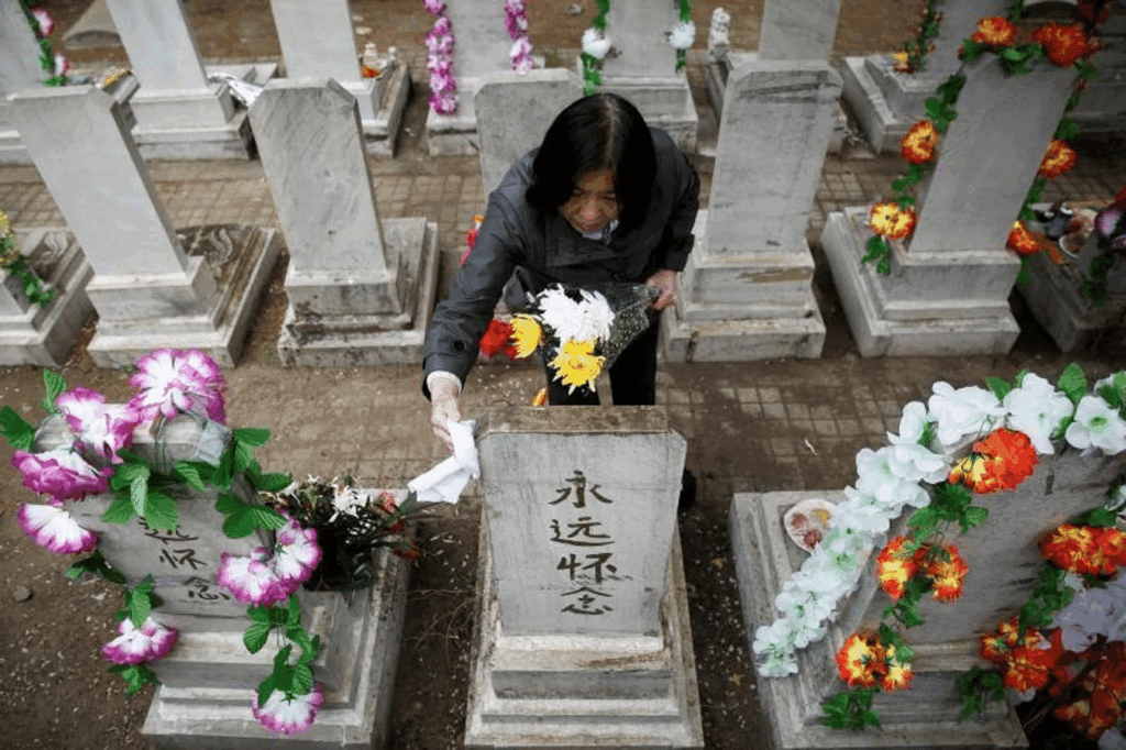 Habitantes de China, visitan y llevan flores a sus difuntos