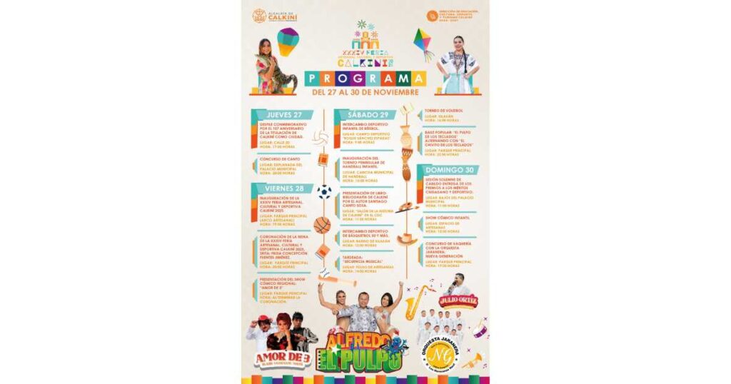 El comité organizador, integrado por Lilia Mercedes Canto González, José Crespo Pérez, Juan de Dios Caamal Moo, Andrea Guadalupe Palomo Cuevas e Isaías Estrella Llanes, dio a conocer el calendario de actividades que formarán parte de la feria. La coronación de la reina se llevará a cabo el próximo 28 de noviembre en el parque principal de la cabecera municipal, marcando el inicio oficial de las celebraciones.