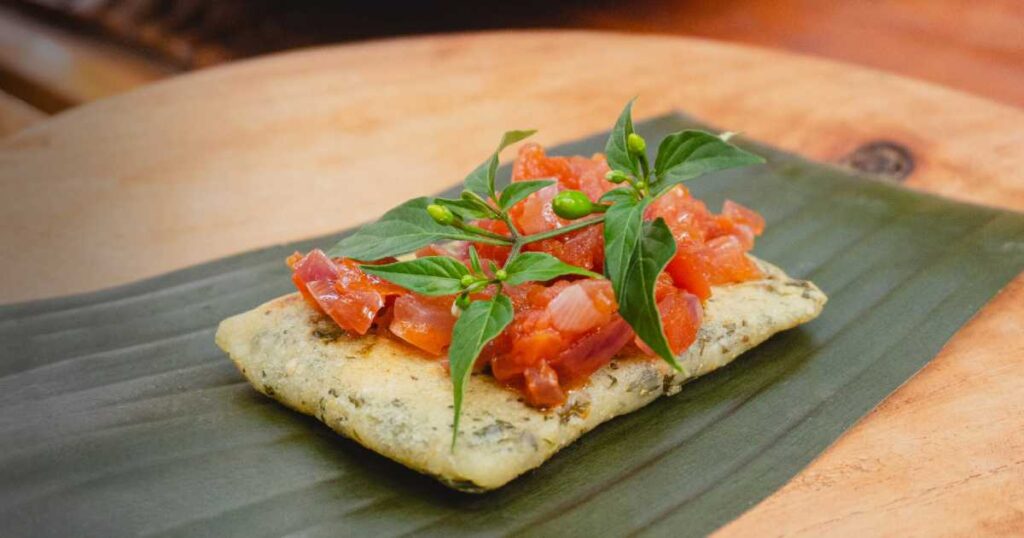 Parte de su encanto radica en que cada tamal se envuelve con las propias hojas de chaya, una planta que forma parte esencial de la alimentación en la península desde tiempos prehispánicos. Al cocerse al vapor, la masa toma un aroma cálido y una consistencia delicada, casi cremosa, que lo distingue de cualquier otro tamal del país.