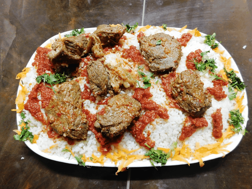 El Fattah es un plato robusto, reconfortante y construido en capas gloriosas. Es una mezcla de texturas y sabores que simboliza la abundancia y el regreso a la “grasa” de la tierra: capas de pan plano crujiente, arroz blanco al vapor y, sobre todo, carne (generalmente cordero o ternera) bañada en una salsa de ajo, vinagre y tomate.