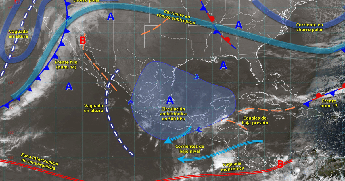Una circulación anticiclónica en niveles medios mantendrá condiciones de cielo despejado, ambiente frío al amanecer con posibles heladas en zonas del norte, noreste, centro y oriente del país, así como temperaturas más cálidas por la tarde y sin probabilidad de lluvia.