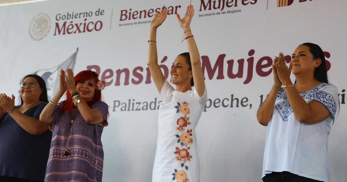 Acompañada de la gobernadora Layda Sansores, la presidenta recordó que esta pensión busca reconocer la labor que realizan las mujeres al ocuparse de los cuidados de la familia y ser parte fundamental de todas las transformaciones del país.