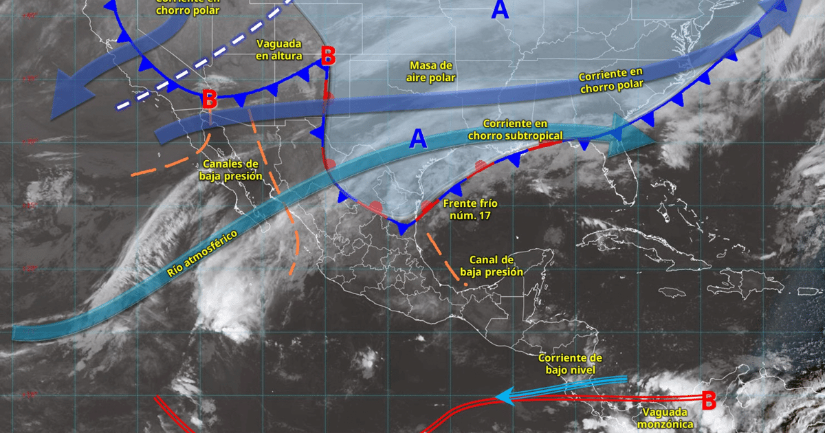 Adicionalmente, una vaguada en altura, un río atmosférico y la corriente en chorro subtropical provocan lluvias aisladas y vientos de 40 a 60 km/h en Baja California, Sonora, Chihuahua, Durango y Sinaloa. La humedad procedente del océano Pacífico, golfo de México y mar Caribe también mantiene la probabilidad de lluvias y chubascos en occidente, centro, sur y sureste del país, incluida la península de Yucatán.