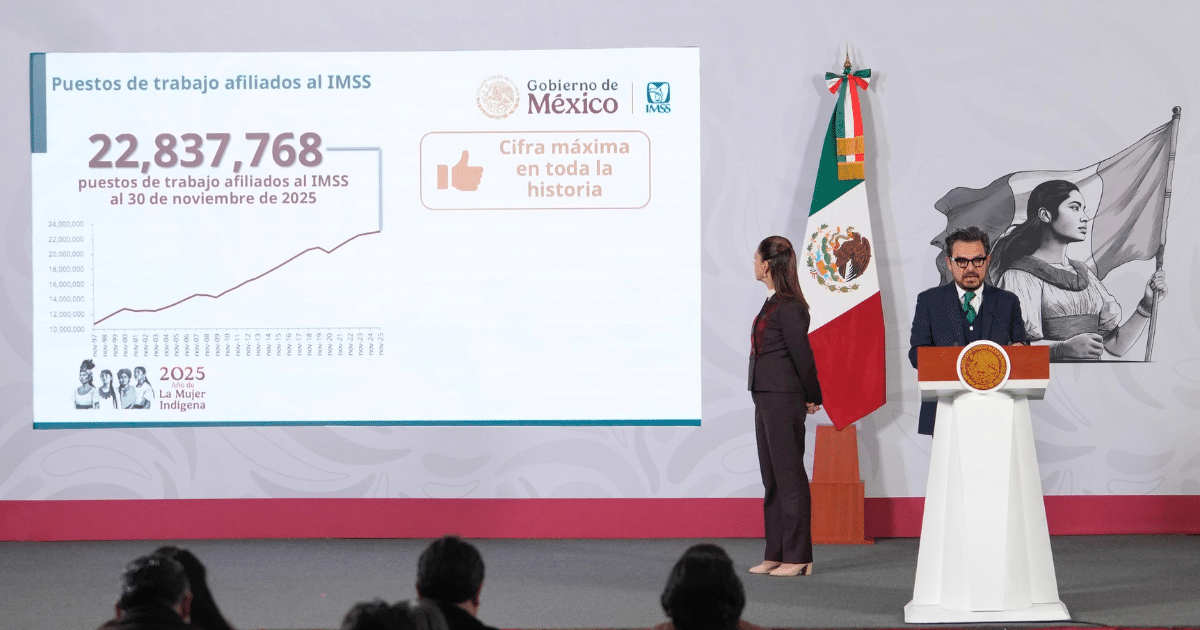 El director general del Instituto Mexicano del Seguro Social (IMSS), Zoé Robledo, informó que al 30 de noviembre el país alcanzó un nuevo récord de empleo formal con 22 millones 837 mil 768 puestos de trabajo afiliados al Seguro Social, la cifra más alta en la historia del Instituto desde que se tiene registro.