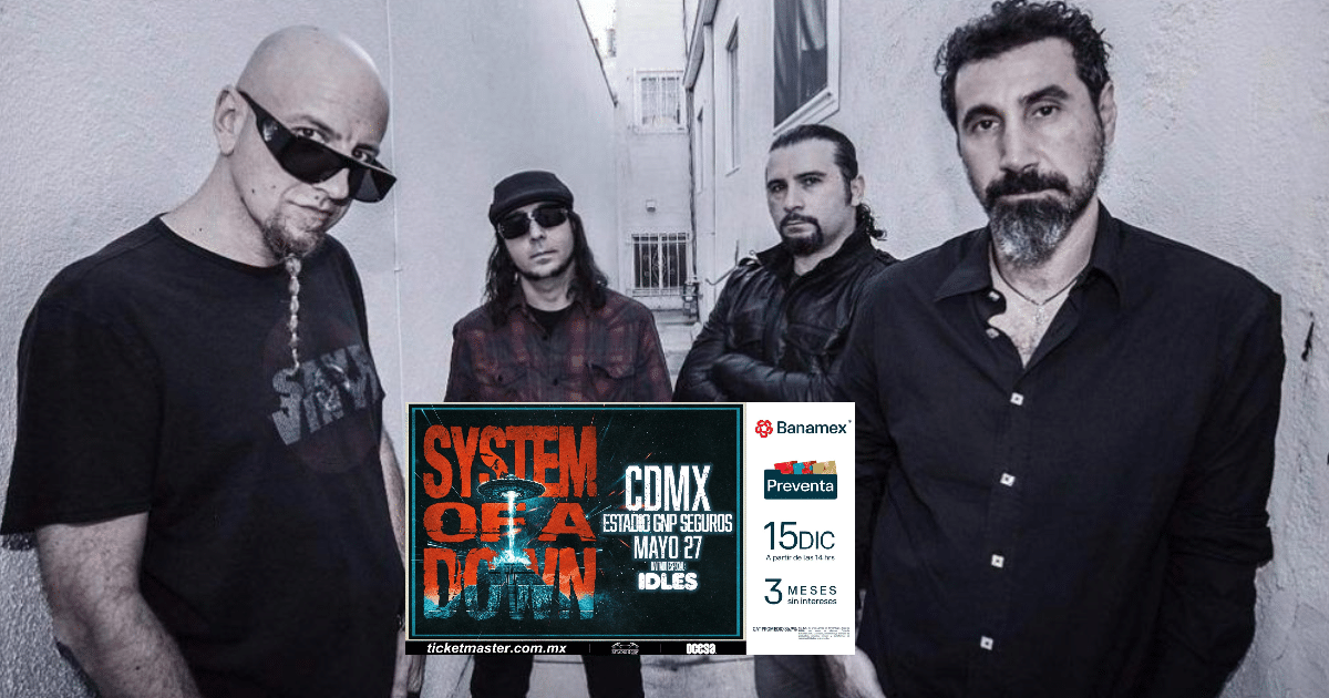 La legendaria banda de rock/metal alternativo System of a Down confirmó un concierto en la Ciudad de México dentro de su gira mundial 2026. La presentación tendrá lugar el 27 de mayo de 2026 en el Estadio GNP Seguros, con la banda británica IDLES como invitada especial.
