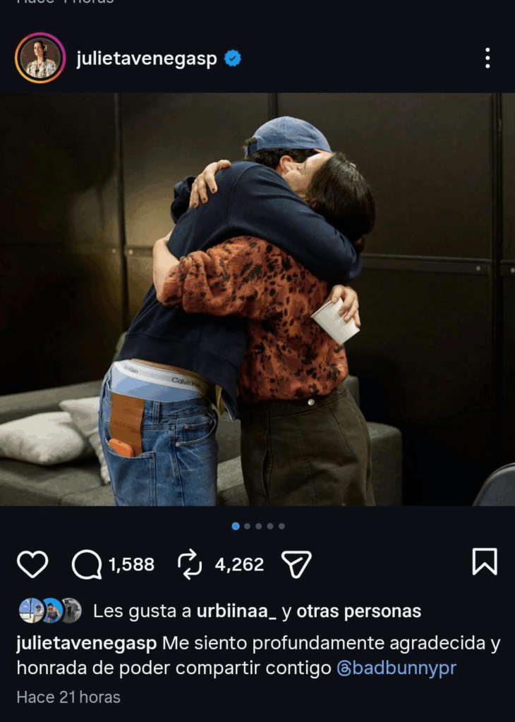 Tras el concierto, Julieta Venegas compartió en redes sociales un mensaje en el que manifestó sentirse agradecida y honrada por la invitación. “Me siento profundamente agradecida y honrada de poder compartir contigo”, escribió junto a imágenes del momento vivido en el escenario.